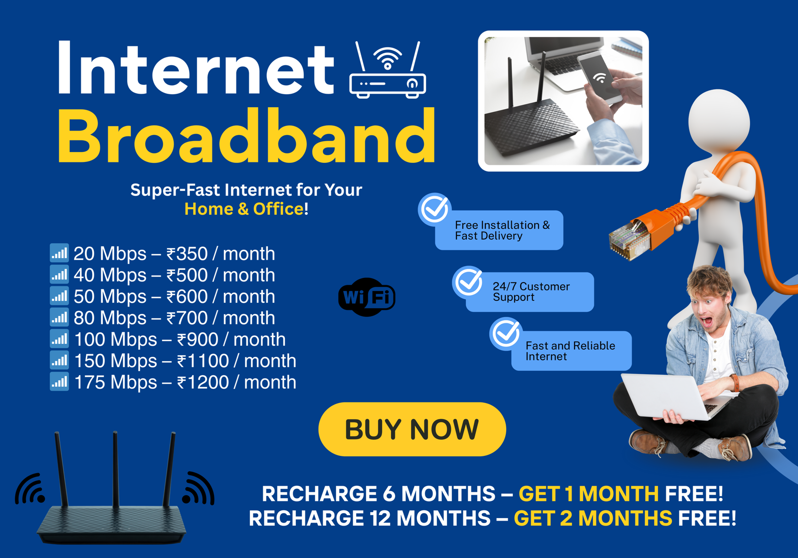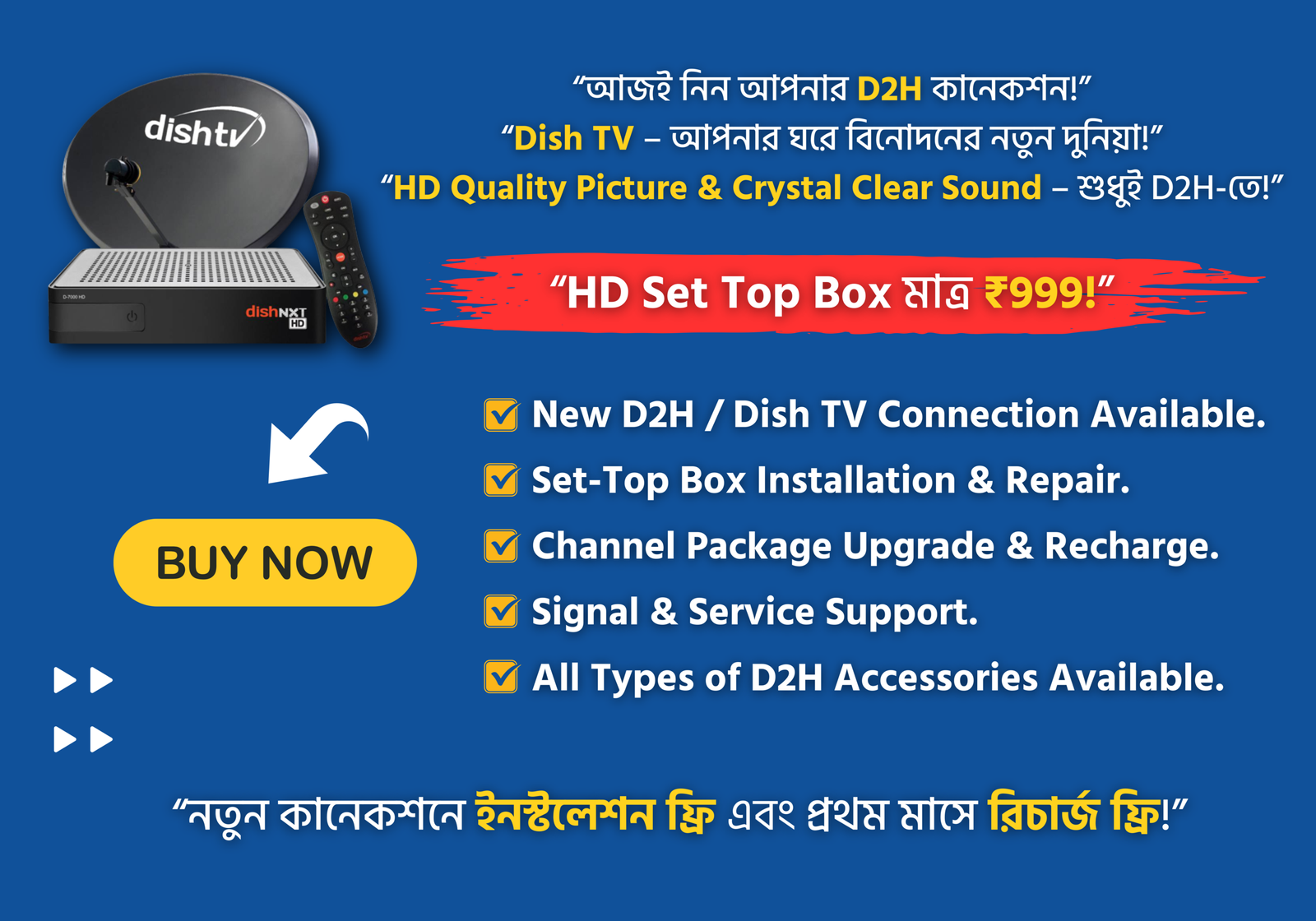 আমরা Cable TV, DTH, Broadband Internet, CCTV Camera, Smart TV Sales/Service এবং 5G Router Internet সার্ভিস প্রদান করি।