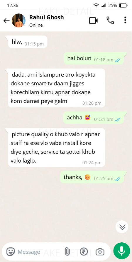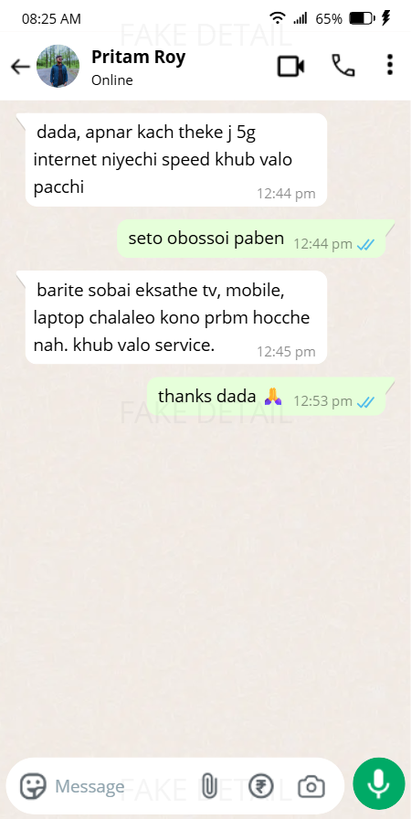 ইসলামপুরে ৩৫ বছর ধরে যে বিশ্বাসে আমরা কাজ করেছি, আজ সেই একই ভরসা নিয়েই এলাম অনলাইনে। “দাদা, লাইন চলে গেছে”—এই ফোনটা আমরা কোনোদিন এড়াইনি। রোদ-বৃষ্টি, হাটের দিন কিংবা রাতের সময়— ডাক এলেই আমরা চলে গেছি, কারণ এটা শুধু কাজ নয়, দায়িত্ব। আমাদের কাছে সার্ভিস মানে শুধু কানেকশন দেওয়া নয়, বরং দীর্ঘদিনের সম্পর্ক গড়ে তোলা। সমস্যা হলে পাশে থাকা, আর ভরসাটা শেষ পর্যন্ত ধরে রাখা। দ্রুত ইনস্টলেশন, সৎ দাম, লোকাল টেকনিশিয়ান এবং কাজের পরেও পাশে থাকা— এই কারণেই মানুষ আমাদের উপর ভরসা করে।